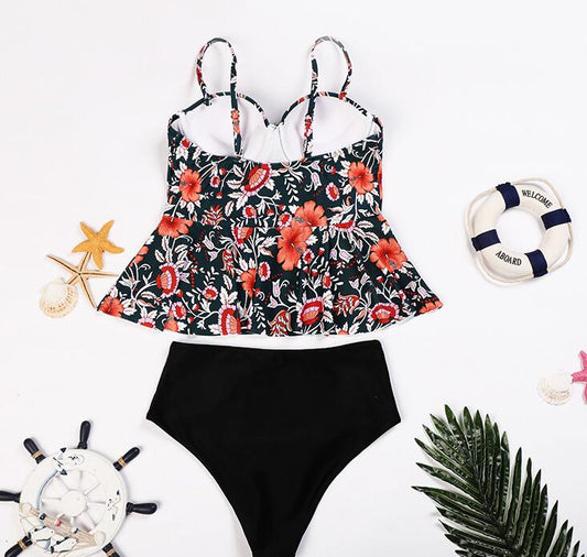 FINAL SALEBLACK AND RED FLORAL TANKINI BIKINI