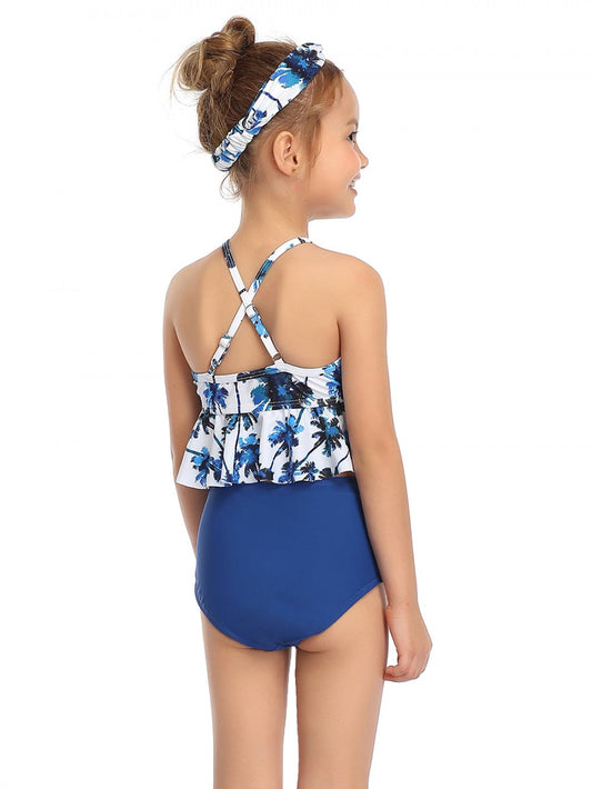 Mommy & Me Matching Blue Palms 2 Piece Bikini Swimsuit