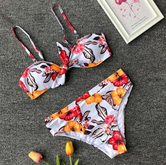 FINAL SALEFRONT-KNOT WHITE FLORAL BIKINI