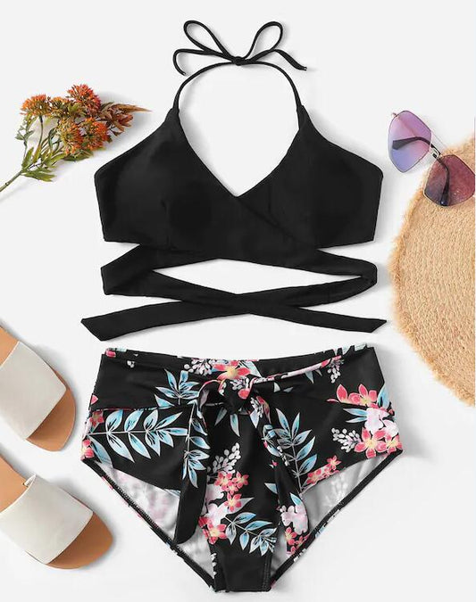 SUMMER NIGHT WRAP AND FLORAL HIGH-WAISTED BIKINI