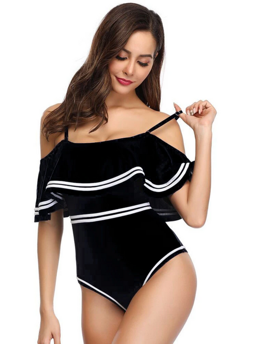 FINAL SALEOFF SHOULDER RUFFLED ONE PIECE SWIMSUIT