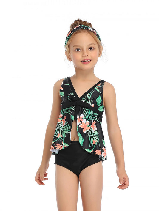 Mommy and Me 2 Piece Floral Green/Black Tankini