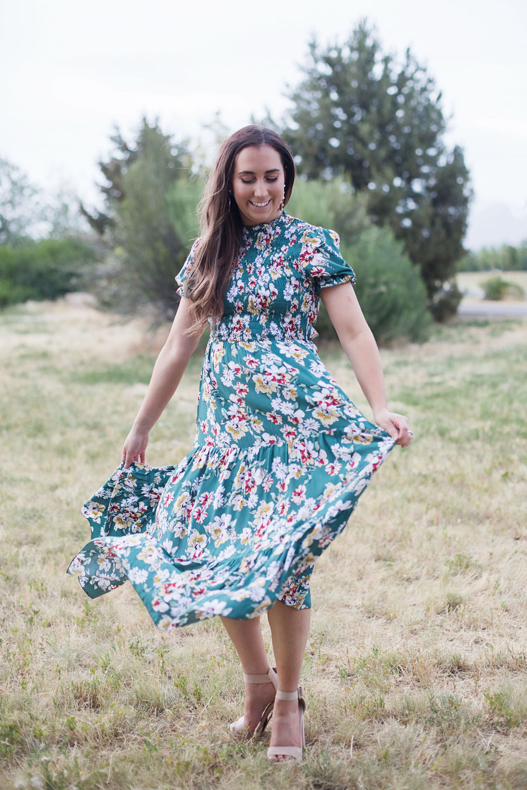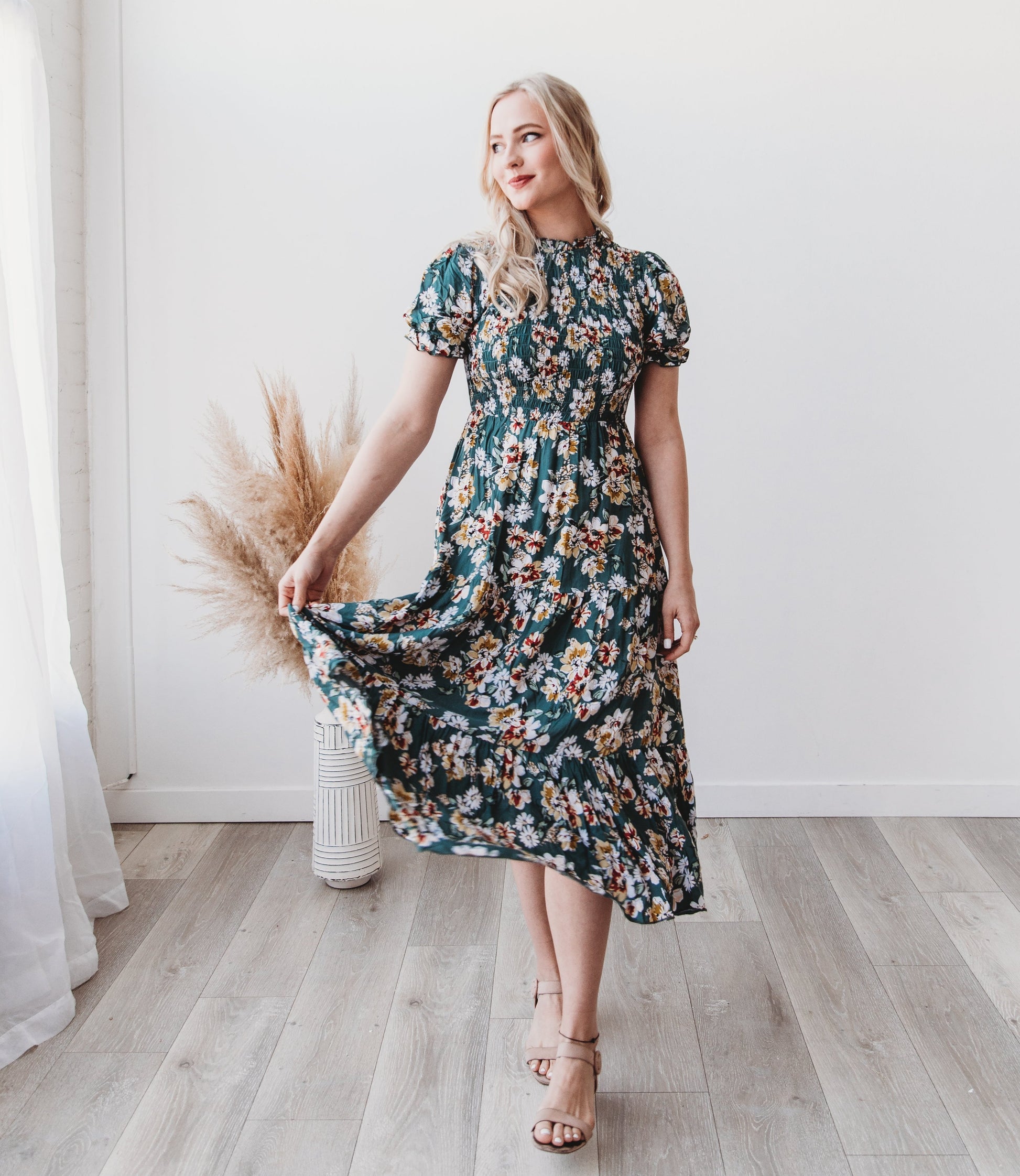 Mira Smoked Floral Midi Dress